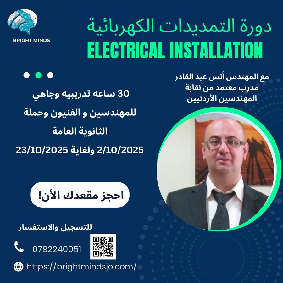 تسعى شركة الإمتياز من خلال هذه الدورة إلى تقديم محتوى شامل ومتكامل حول مبادئ الكهرباء والتمديدات الكهربائية، وذلك من خلال برنامج تدريبي مكثّف يُعقَد وجاهيًا في أكاديمية المهندسين للتدريب والتطوير في الشميساني.