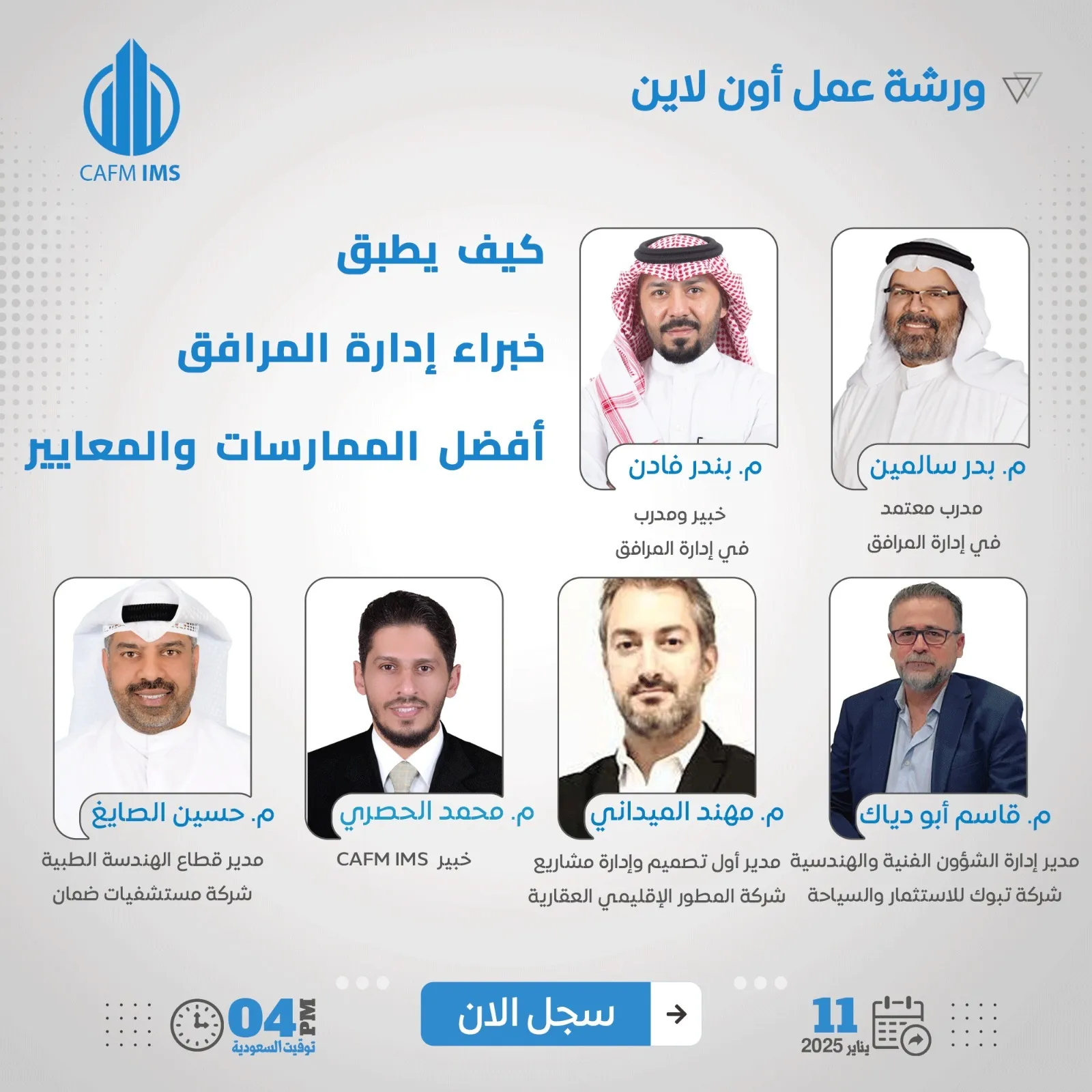 إعلان ورشة عمل أونلاين مجانية ومميزة لمحترفي إدارة المرافق